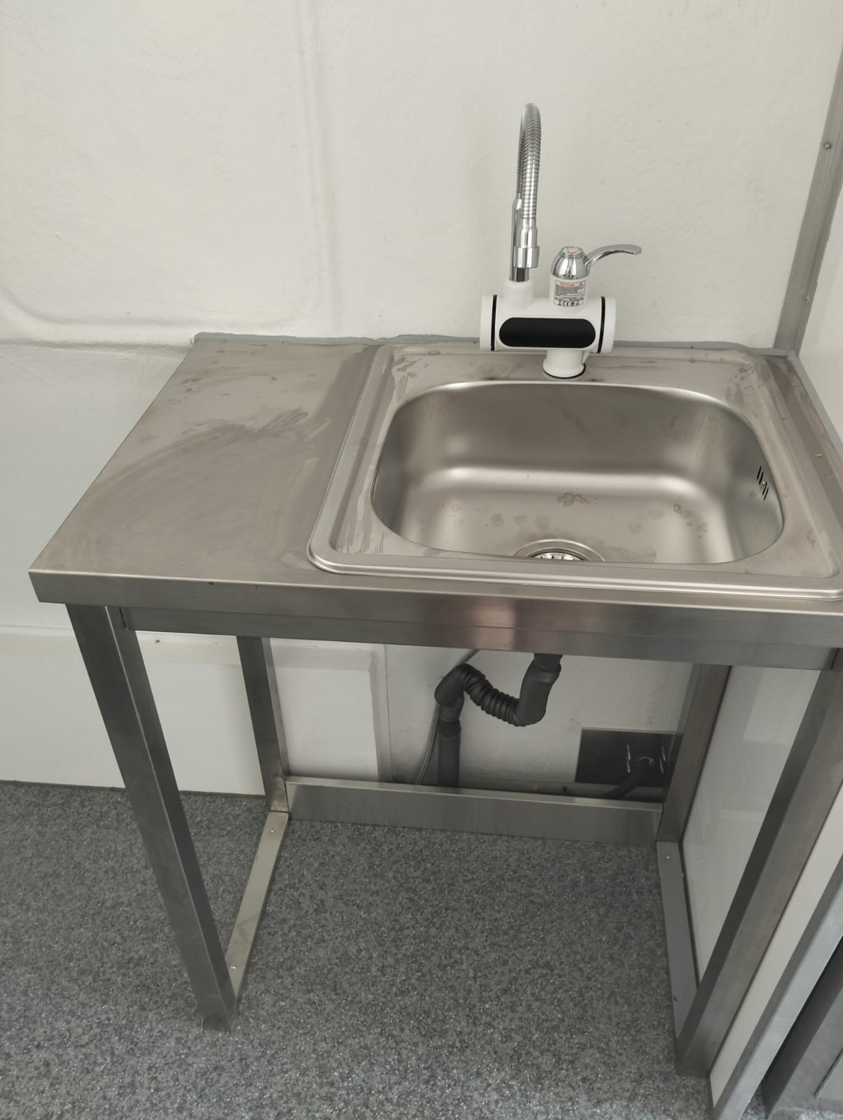 » Sistema de água quente com lavatório inox, torneira, ligação direta água da rede;